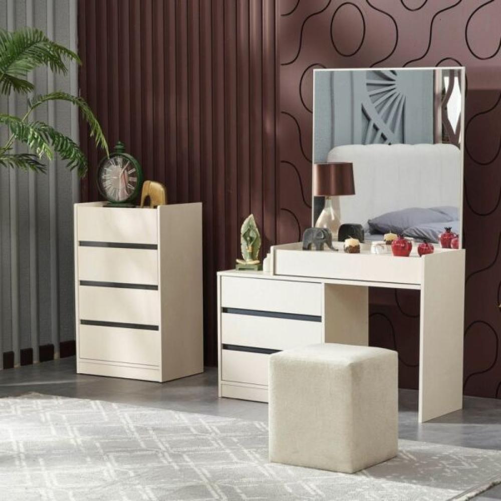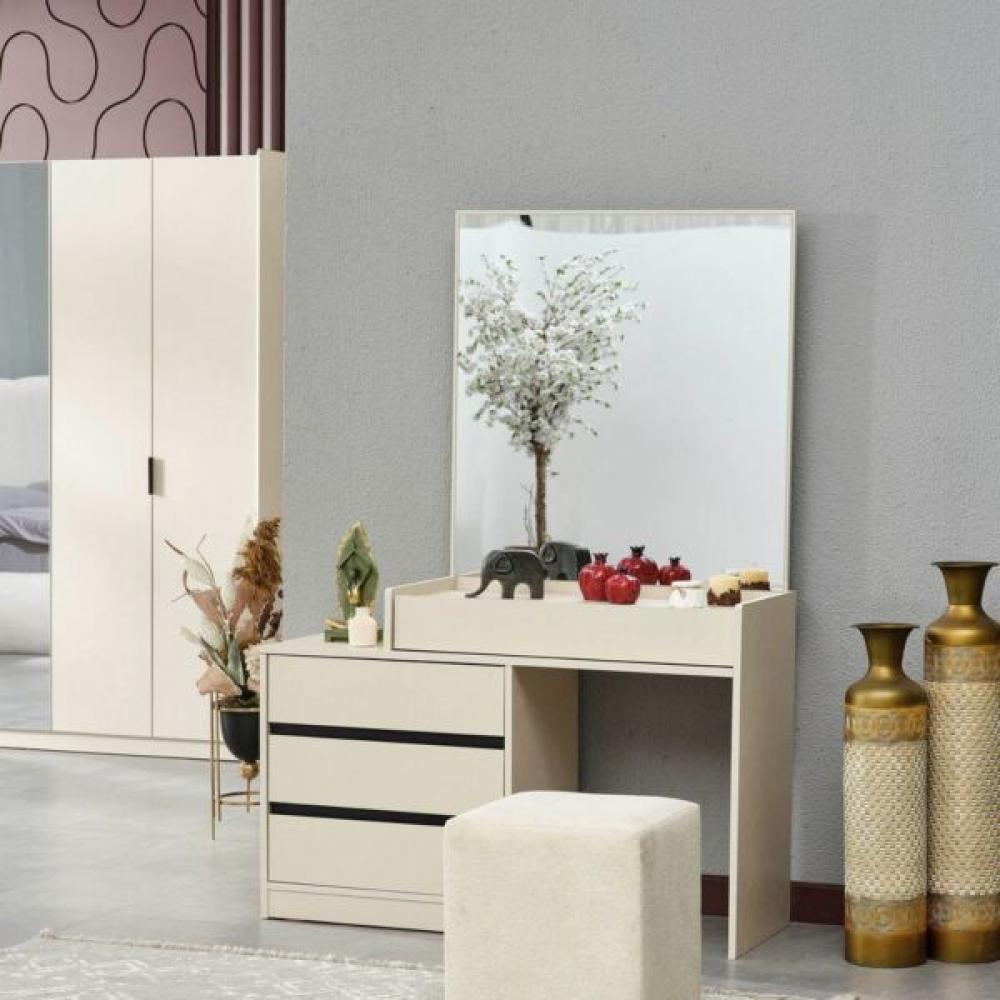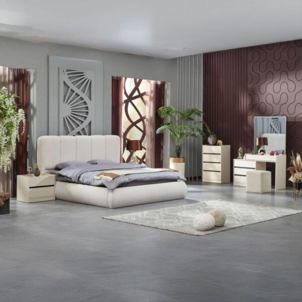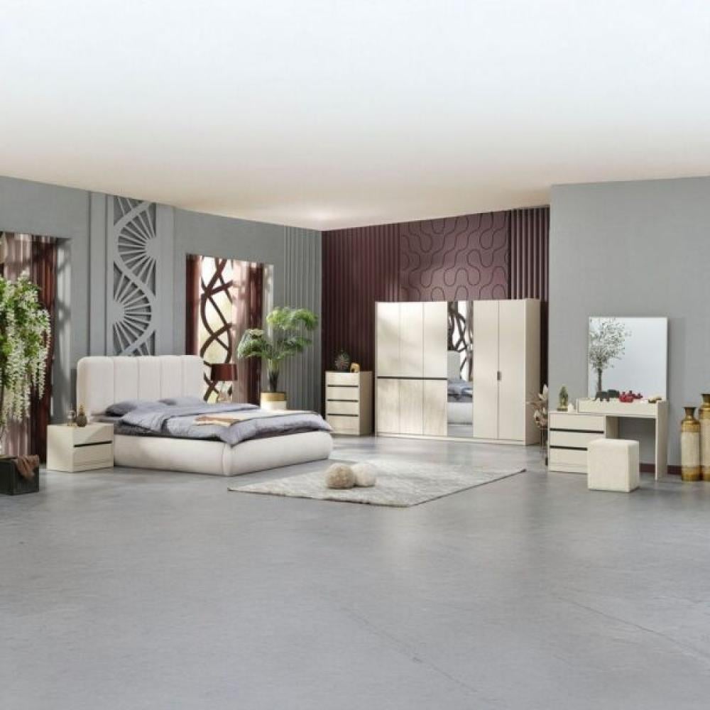 حوّلي مساحتك الخاصة إلى ملاذ هادئ ومريح مع طقم غرفة النوم الفاخر هذا. يتكون من سرير، و2 كومودينو ، وطاولة تزيين بمرآة ومقعد طاولة تزيين، ومصنوع من الخشب الهندسي مع تشطيب ميلامين أنيق، ومع الهيكل المستقر والمتانة العالية، يعِدك باستخدام موثوق وطويل العمر لراحة عائلتك، وهو سهل الصيانة ويُعد استثمارًا مدروسًا ولا غنى عنه يجلب الفخامة والرفاهية إلى منزلك.تُستخدم صور المنتج المرفقة في أغراض التوضيح والتمثيل فقط.قد يختلف لون المنتج قليلاً بسبب مصادر الإضاءة الفوتوغرافية أو إعدادات الشاشة/شاشتك.تُباع المرتبة وخزانة الملابس بشكل منفصل.