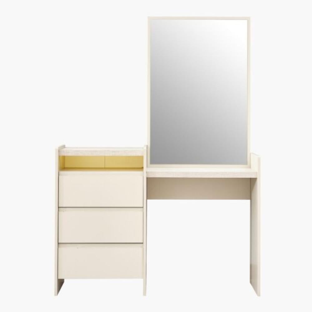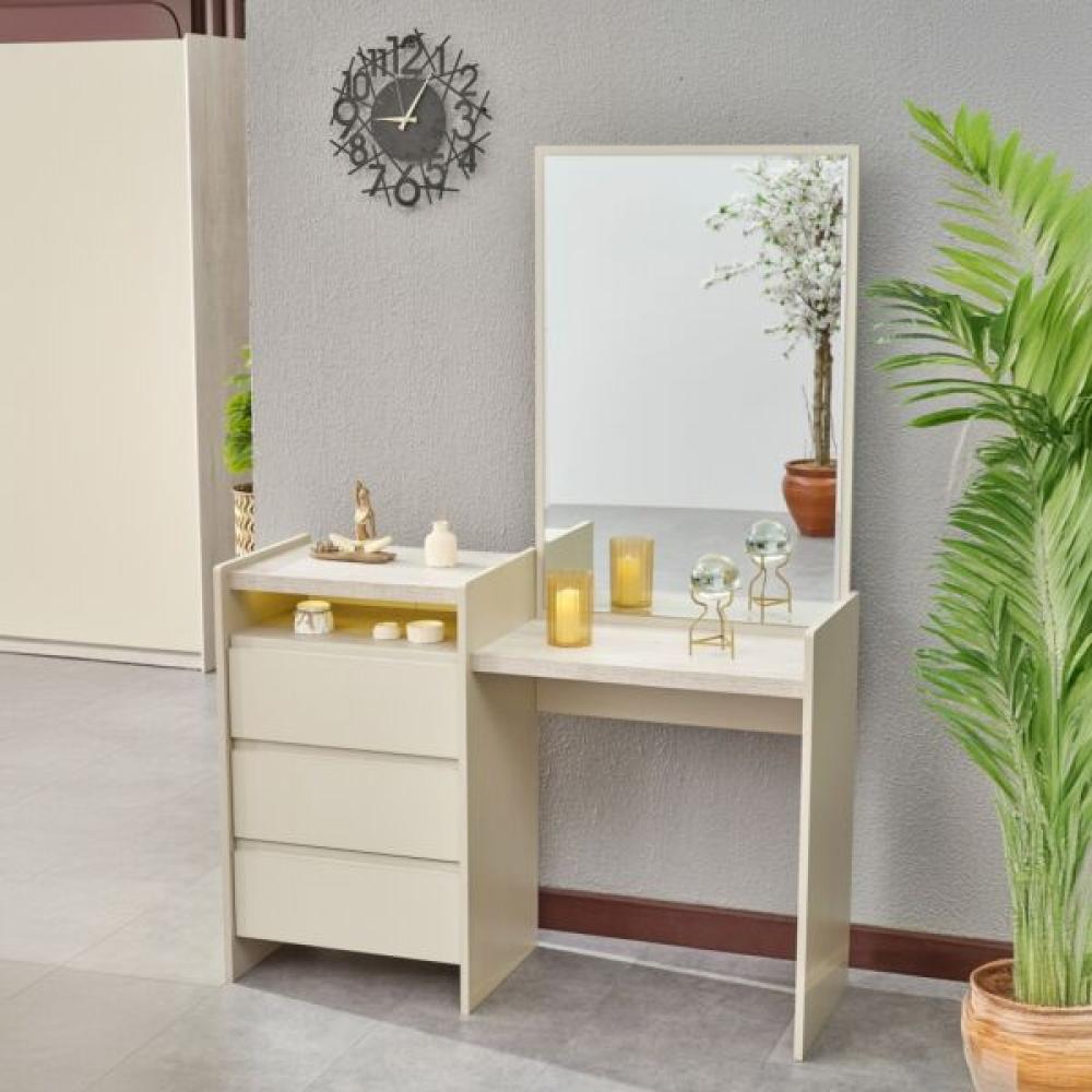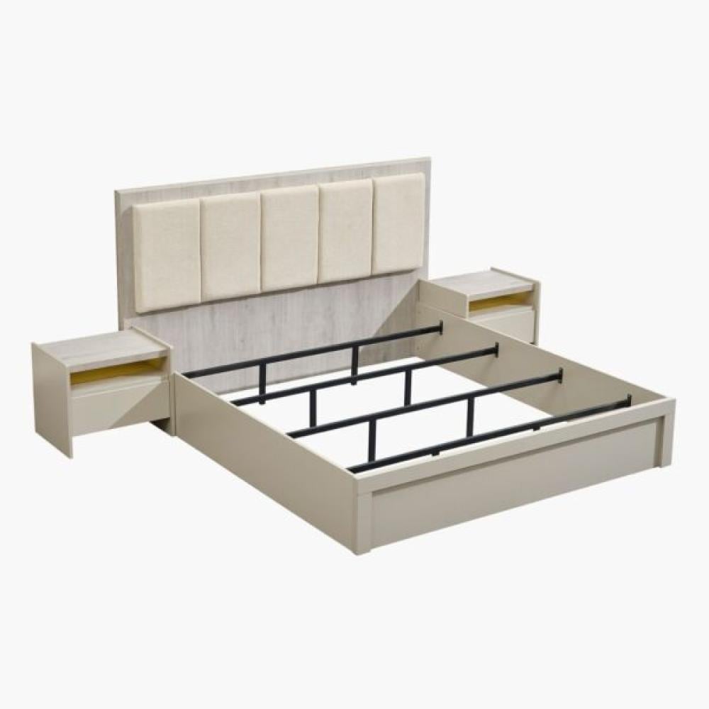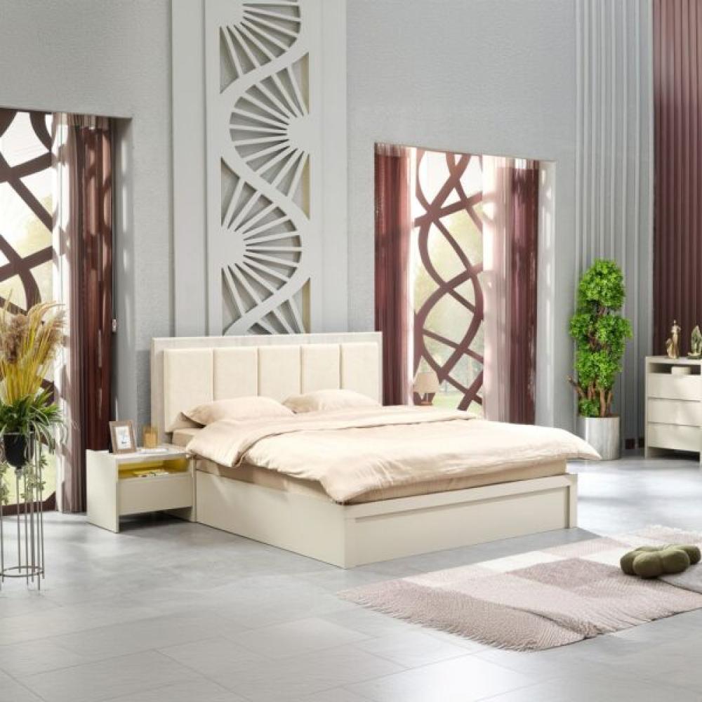 يتضمن الطقم: 1 × سرير كينج، 2 × طاولة سرير جانبية, 1 × طاولة تزيين، 1 × مرآة، 1 × مقعد.