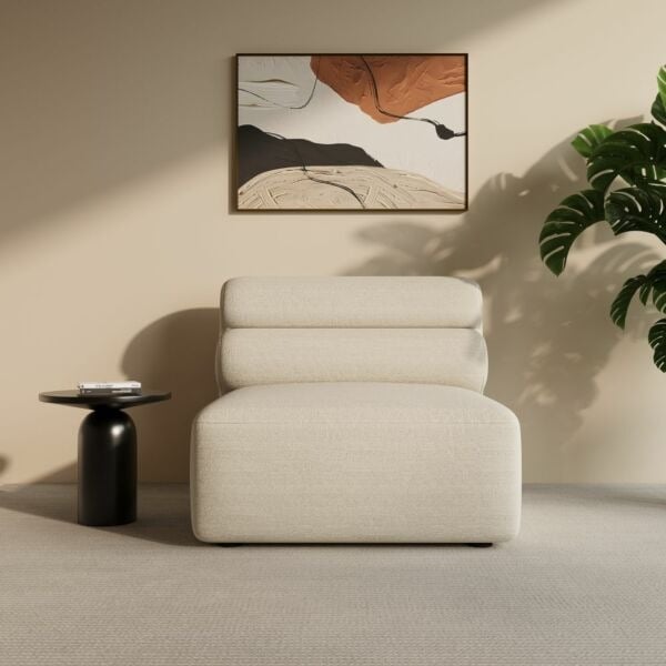 كنبة مفردة عصرية بدون ذراعين، بتصميم انسيابي يجمع بين الراحة والأناقة.