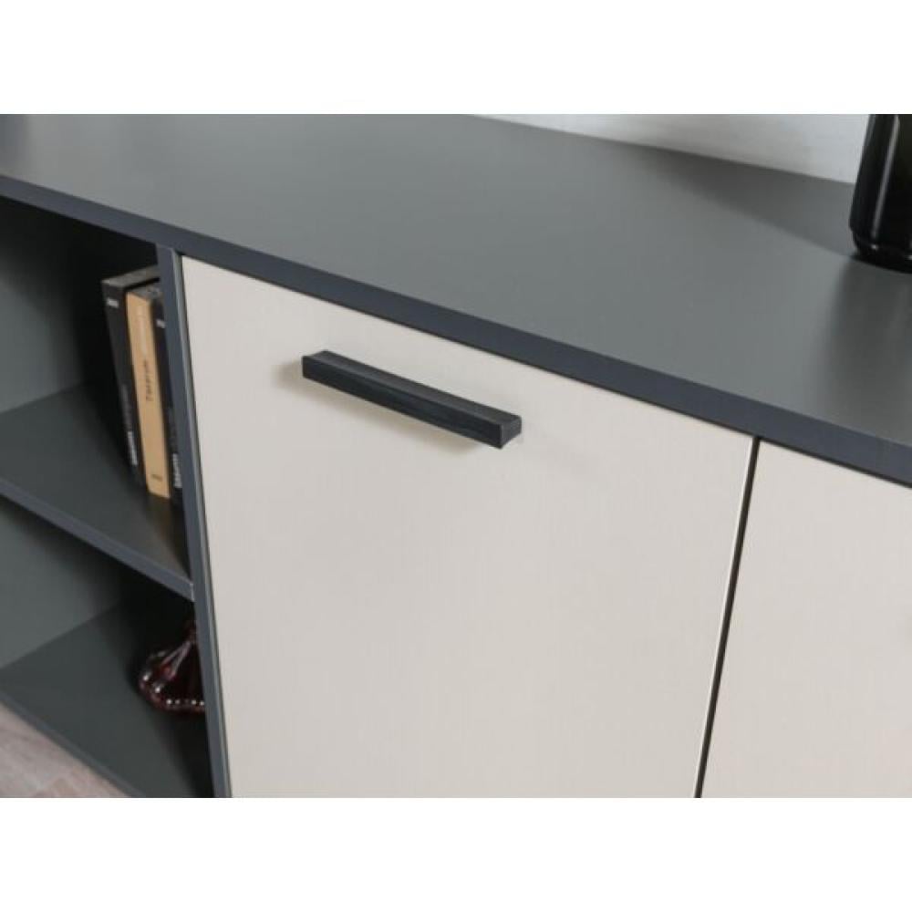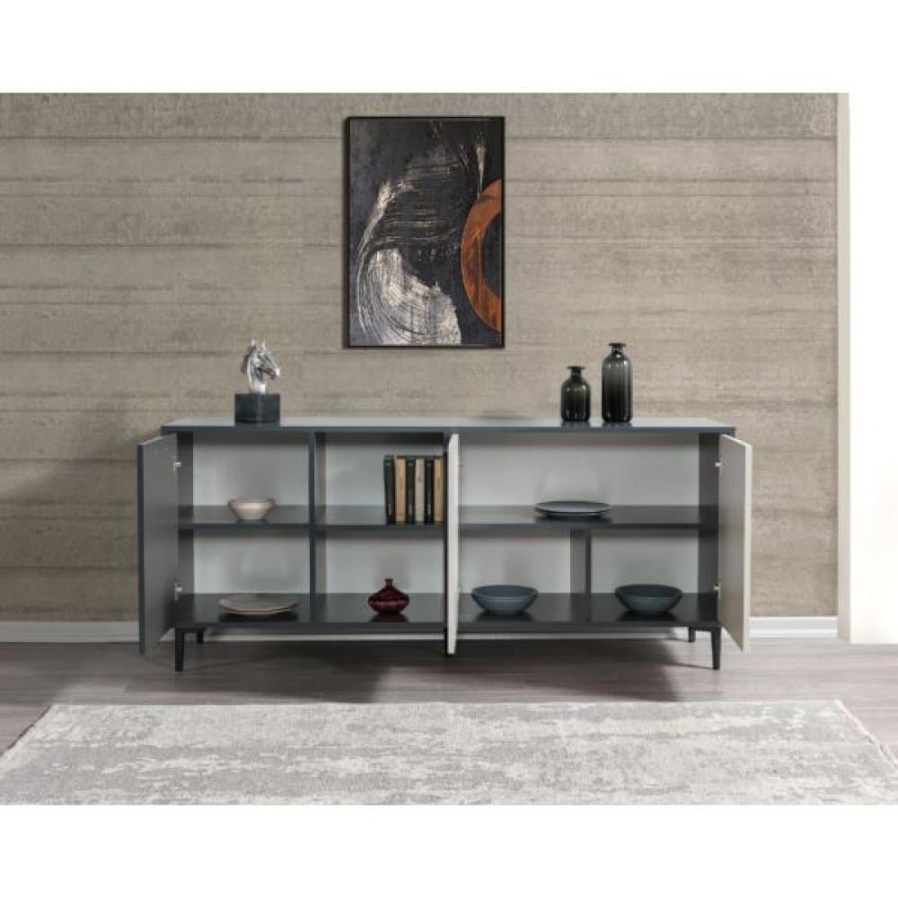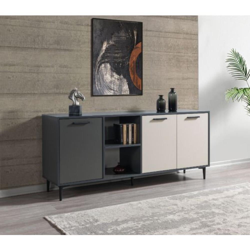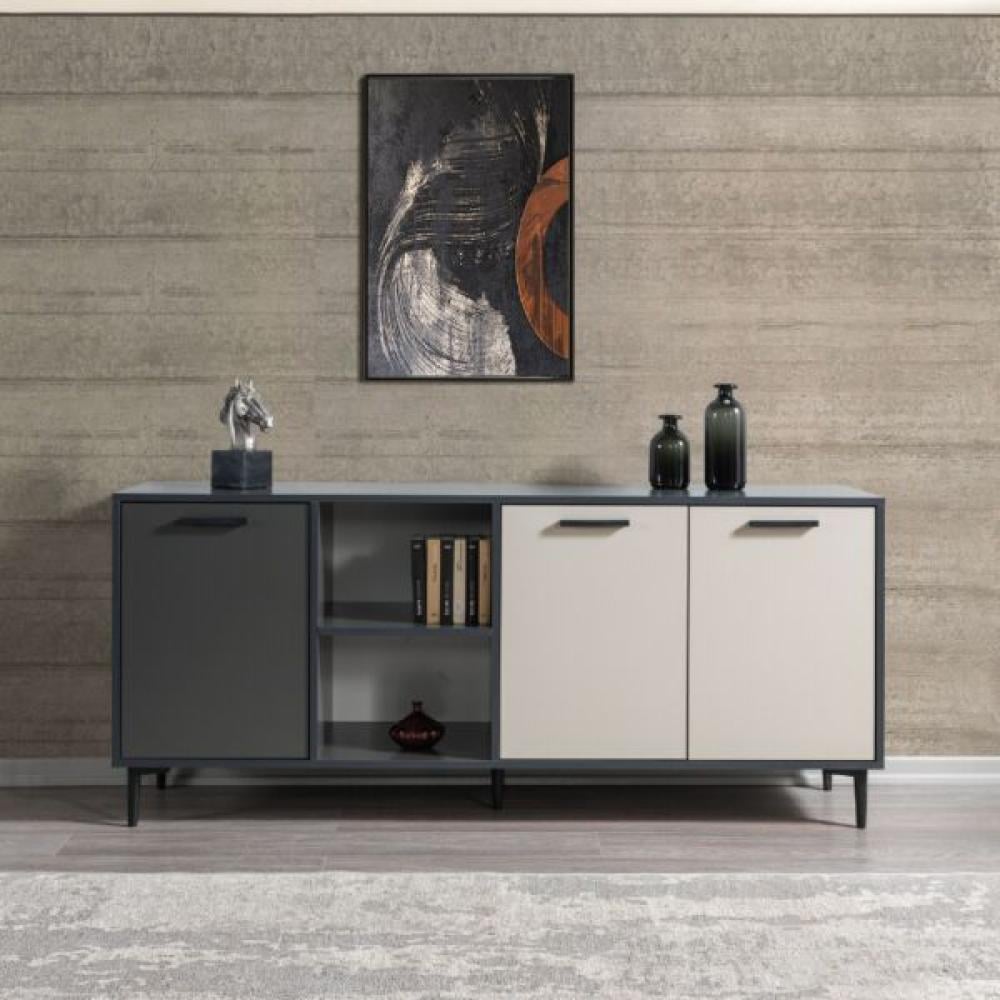 تتميز طاولة بوفيه لينتون بتصميم عصري وأنيق يجمع بين اللونين الرمادي الغامق والرمادي الفاتح، مما يجعلها تناسب أي ديكور داخلي، سواء كان حديثًا أو تقليديًا.